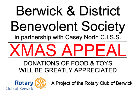 The following week , Nov 27th, we will be having our AGMs for both the Rotary Club of Berwick and the Rotary Berwick And District Benevolent Society.