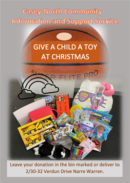 Christmas is well and truly approaching fast and our annual Christmas Collection in support of Casey North Community Information and Support Services is in full swing. This year we once again have several local schools participating and collection cages have been placed at the following local shopping centres:
