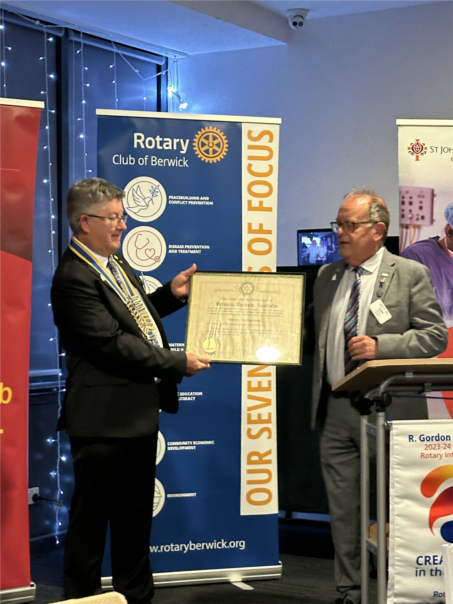 Over the last five weeks, while travelling, random people in five countries have asked me a hundred times what I do as a hobby. The number one thing I do to keep myself off the streets that isn't work-related is Rotary. My Club, the Rotary Club of Berwick, has been active in many interesting ways over the 20 years I have been a Rotarian. A few months ago, the current President, Dave Anderson, predicted that a good elevator pitch was essential to explaining Rotary to anyone who asked and provided a workshop to create such a pitch. If only I had paid more attention! This crowd doesn't seem convinced by my cobbled-together Rotary story. I was surprised by the number of people who asked me the question and followed up by asking more questions about Rotary.  In my recent experience, most people knew about Rotary but did not know the depth and spread of what Rotary does. Some of the reasons for my trip were in my favour: to visit a recent Rotary Exchange student and a family member who is a Rotarian. But Rotary was so much more than that! I often draw on experiences I have from people I know through Rotary. If I hadn't been in Rotary, I would never have had those experiences and maybe never have become the well-rounded individual I am.  However, I know that being part of Rotary can profoundly transform your life if you are willing to venture beyond just the club experience. It has broadened my understanding of the world, provided me with opportunities to contribute and positively impact other people's lives, and created a pathway to be part of a bigger picture. Rotary has connected me with a global network of dedicated individuals, all striving to make a difference. I have discovered the power of service, collaboration, and community, realizing that together, we can achieve remarkable things. Rotary is not just about attending meetings; it's about embracing a journey of personal growth, service, and global impact. So, how will I put that all into my elevator pitch for the next person who asks me about what I do as a hobby? Below are the criteria that should be included. Perhaps we need another workshop because most people who asked me would make great Rotarians. Over to the Club leaders for an Elevator Pitch Workshop V2! An elevator pitch is crucial for Rotary because it succinctly communicates the essence and impact of the organization, which is essential for several reasons: Attracting New Members: A clear and compelling elevator pitch can quickly capture the interest of potential new members by highlighting the unique benefits and opportunities Rotary offers. Increasing Awareness: It helps raise awareness about Rotary's mission and projects among the general public, which can lead to increased community support and engagement. Securing Partnerships: A well-crafted pitch can attract potential partners, sponsors, and donors by clearly conveying the value and impact of collaborating with Rotary. Consistency in Messaging: It ensures that all Rotarians can consistently and effectively communicate the organization's goals and values, creating a unified message across different audiences and settings. Enhancing Member Engagement: An elevator pitch reminds current members of the core reasons they are part of Rotary, reinforcing their commitment and enthusiasm for ongoing and future projects. Promoting Impact: It highlights Rotary's tangible outcomes, demonstrating how the organization's efforts lead to positive changes locally and globally.