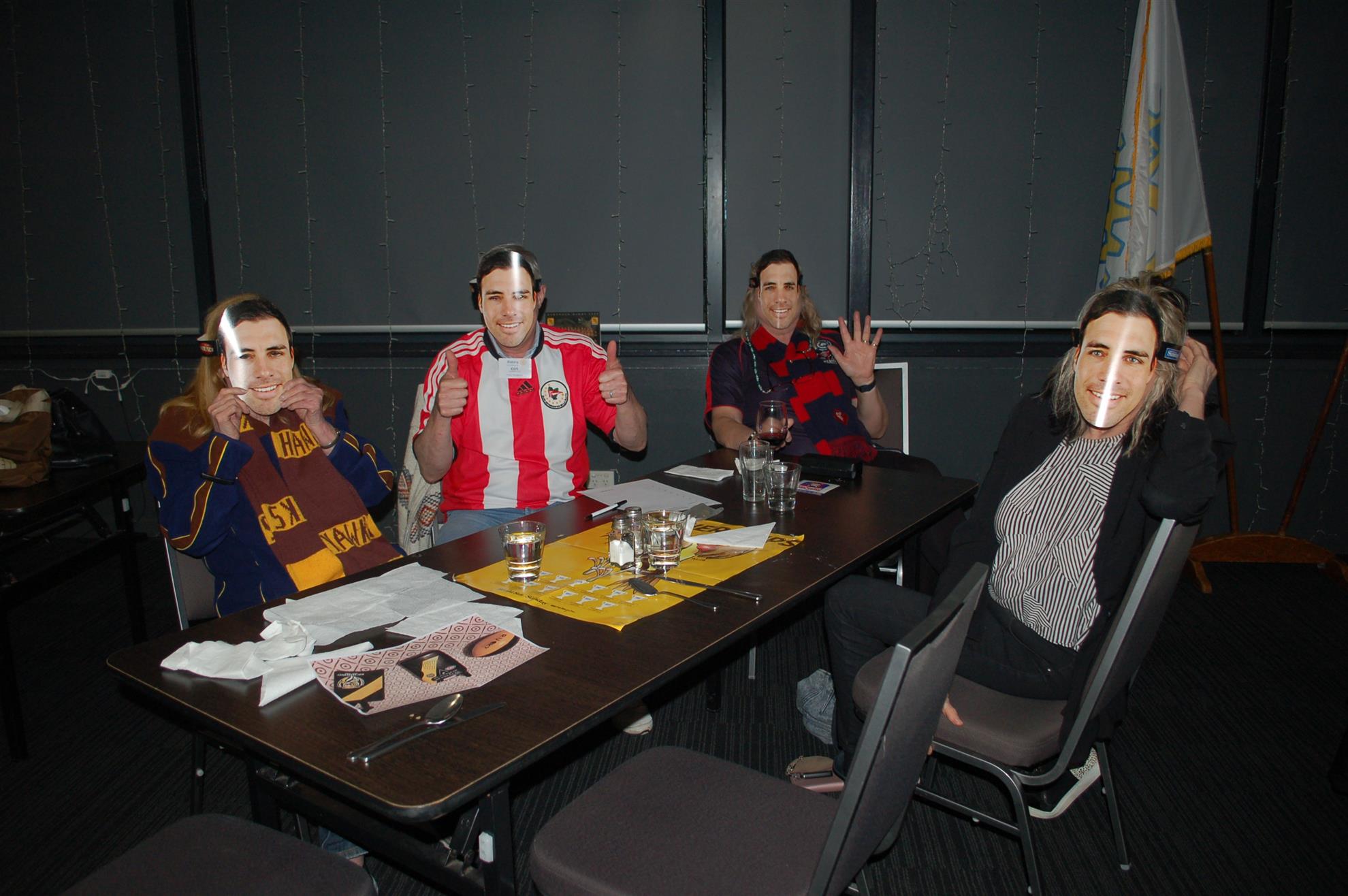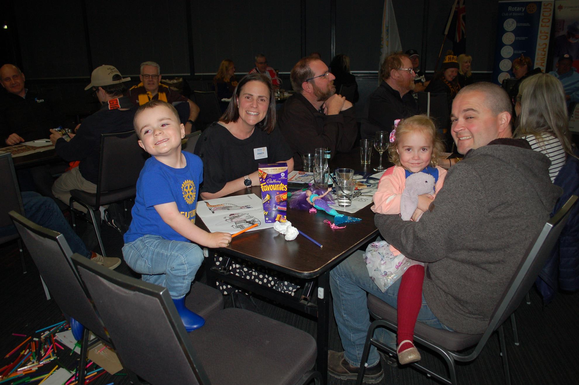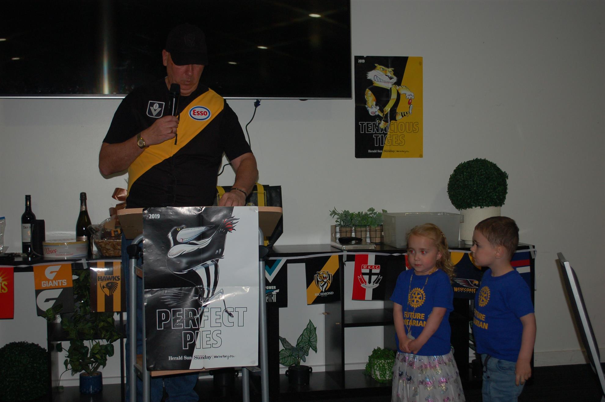 The night promised plenty and delivered in spades. For those who could not make it you unfortunately missed an extremely enjoyable evening with the quiz testing not only footy trivia but also general trivia and incorporated a treasure hunt (abley assisted by Georgia & Lachie Marshall), some fun games as well as the return of the “Richo masks”. The scoreboard was close over 2n6 to 5th but the runaway winners were the Fitness 4 Blokes team. There were plenty of prizes along the way including some lovely Rotary memorabilia donated by the family of Gerald Treasure.